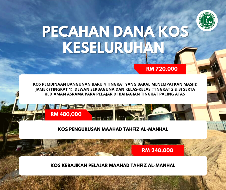 DANA BERJUMLAH RM1,440,000 DIPERLUKAN UNTUK MENYAMBUNG BAKI PEMBANGUNAN TAHFIZ AL-MANHAL